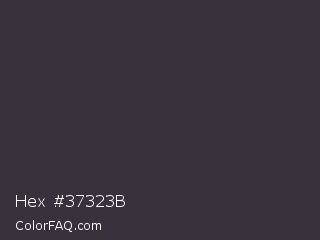 Hex #37323b Color is a very dark purple color and the nearest color is Onyx #353839. Hex code #37323b and RGB value is rgb(55,50,59). In RGB color space, this color is composed of 22% red, 20% green, 23% blue, In CMYK color space, this color is composed of 7% cyan, 15% magenta, 0% yellow , 77% black , In HSL color space, this color has a hue angle of 273° , 8% saturation and 21% lightness.