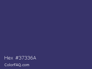 Hex #37336a Color is a normal indigo color and the nearest color is Deep Koamaru #333366. Hex code #37336a and RGB value is rgb(55,51,106). In RGB color space, this color is composed of 22% red, 20% green, 42% blue, In CMYK color space, this color is composed of 48% cyan, 52% magenta, 0% yellow , 58% black , In HSL color space, this color has a hue angle of 244° , 35% saturation and 31% lightness.