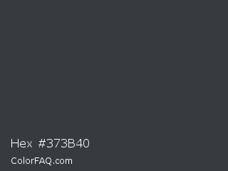 Hex #373b40 Color is a dark blue color and the nearest color is Tuna #353542. Hex code #373b40 and RGB value is rgb(55,59,64). In RGB color space, this color is composed of 22% red, 23% green, 25% blue, In CMYK color space, this color is composed of 14% cyan, 8% magenta, 0% yellow , 75% black , In HSL color space, this color has a hue angle of 213° , 8% saturation and 23% lightness.