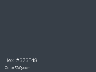 Hex #373f48 Color is a dark blue color and the nearest color is Arsenic #3b444b. Hex code #373f48 and RGB value is rgb(55,63,72). In RGB color space, this color is composed of 22% red, 25% green, 28% blue, In CMYK color space, this color is composed of 24% cyan, 13% magenta, 0% yellow , 72% black , In HSL color space, this color has a hue angle of 212° , 13% saturation and 25% lightness.