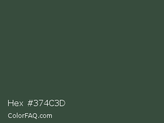 Hex #374c3d Color is a dark green color and the nearest color is Lunar Green #3c493a. Hex code #374c3d and RGB value is rgb(55,76,61). In RGB color space, this color is composed of 22% red, 30% green, 24% blue, In CMYK color space, this color is composed of 28% cyan, 0% magenta, 20% yellow , 70% black , In HSL color space, this color has a hue angle of 137° , 16% saturation and 26% lightness.