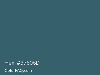 Hex #37606d Color is a normal blue color and the nearest color is William #3a686c. Hex code #37606d and RGB value is rgb(55,96,109). In RGB color space, this color is composed of 22% red, 38% green, 43% blue, In CMYK color space, this color is composed of 50% cyan, 12% magenta, 0% yellow , 57% black , In HSL color space, this color has a hue angle of 194° , 33% saturation and 32% lightness.