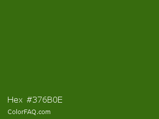 Hex #376b0e Color is a dark green color and the nearest color is Dell #396413. Hex code #376b0e and RGB value is rgb(55,107,14). In RGB color space, this color is composed of 22% red, 42% green, 5% blue, In CMYK color space, this color is composed of 49% cyan, 0% magenta, 87% yellow , 58% black , In HSL color space, this color has a hue angle of 94° , 77% saturation and 24% lightness.