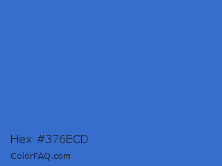 Hex #376ecd Color is a normal blue color and the nearest color is Han Blue #446ccf. Hex code #376ecd and RGB value is rgb(55,110,205). In RGB color space, this color is composed of 22% red, 43% green, 80% blue, In CMYK color space, this color is composed of 73% cyan, 46% magenta, 0% yellow , 20% black , In HSL color space, this color has a hue angle of 218° , 60% saturation and 51% lightness.