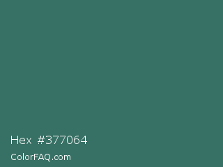 Hex #377064 Color is a normal cyan color and the nearest color is William #3a686c. Hex code #377064 and RGB value is rgb(55,112,100). In RGB color space, this color is composed of 22% red, 44% green, 39% blue, In CMYK color space, this color is composed of 51% cyan, 0% magenta, 11% yellow , 56% black , In HSL color space, this color has a hue angle of 167° , 34% saturation and 33% lightness.