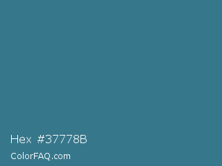 Hex #37778b Color is a normal blue color and the nearest color is Teal Blue #367588. Hex code #37778b and RGB value is rgb(55,119,139). In RGB color space, this color is composed of 22% red, 47% green, 55% blue, In CMYK color space, this color is composed of 60% cyan, 14% magenta, 0% yellow , 45% black , In HSL color space, this color has a hue angle of 194° , 43% saturation and 38% lightness.