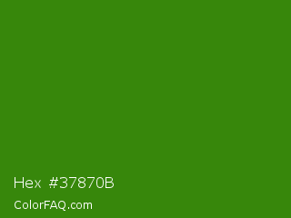 Hex #37870b Color is a dark green color and the nearest color is La Palma #368716. Hex code #37870b and RGB value is rgb(55,135,11). In RGB color space, this color is composed of 22% red, 53% green, 4% blue, In CMYK color space, this color is composed of 59% cyan, 0% magenta, 92% yellow , 47% black , In HSL color space, this color has a hue angle of 99° , 85% saturation and 29% lightness.