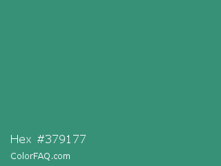 Hex #379177 Color is a normal green color and the nearest color is Illuminating Emerald #319177. Hex code #379177 and RGB value is rgb(55,145,119). In RGB color space, this color is composed of 22% red, 57% green, 47% blue, In CMYK color space, this color is composed of 62% cyan, 0% magenta, 18% yellow , 43% black , In HSL color space, this color has a hue angle of 163° , 45% saturation and 39% lightness.