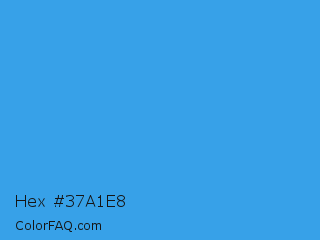 Hex #37a1e8 Color is a normal blue color and the nearest color is Button Blue #24a0ed. Hex code #37a1e8 and RGB value is rgb(55,161,232). In RGB color space, this color is composed of 22% red, 63% green, 91% blue, In CMYK color space, this color is composed of 76% cyan, 31% magenta, 0% yellow , 9% black , In HSL color space, this color has a hue angle of 204° , 79% saturation and 56% lightness.