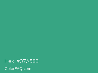 Hex #37a583 Color is a normal green color and the nearest color is Zomp #39a78e. Hex code #37a583 and RGB value is rgb(55,165,131). In RGB color space, this color is composed of 22% red, 65% green, 51% blue, In CMYK color space, this color is composed of 67% cyan, 0% magenta, 21% yellow , 35% black , In HSL color space, this color has a hue angle of 161° , 50% saturation and 43% lightness.