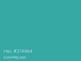 Hex #37a9a4 Color is a normal cyan color and the nearest color is Keppel #3ab09e. Hex code #37a9a4 and RGB value is rgb(55,169,164). In RGB color space, this color is composed of 22% red, 66% green, 64% blue, In CMYK color space, this color is composed of 67% cyan, 0% magenta, 3% yellow , 34% black , In HSL color space, this color has a hue angle of 177° , 51% saturation and 44% lightness.