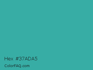 Hex #37ada5 Color is a normal cyan color and the nearest color is Keppel #3ab09e. Hex code #37ada5 and RGB value is rgb(55,173,165). In RGB color space, this color is composed of 22% red, 68% green, 65% blue, In CMYK color space, this color is composed of 68% cyan, 0% magenta, 5% yellow , 32% black , In HSL color space, this color has a hue angle of 176° , 52% saturation and 45% lightness.