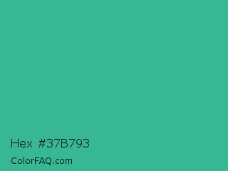 Hex #37b793 Color is a normal green color and the nearest color is Mountain Meadow #30ba8f. Hex code #37b793 and RGB value is rgb(55,183,147). In RGB color space, this color is composed of 22% red, 72% green, 58% blue, In CMYK color space, this color is composed of 70% cyan, 0% magenta, 20% yellow , 28% black , In HSL color space, this color has a hue angle of 163° , 54% saturation and 47% lightness.