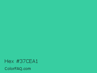 Hex #37cea1 Color is a normal green color and the nearest color is Shamrock #33cc99. Hex code #37cea1 and RGB value is rgb(55,206,161). In RGB color space, this color is composed of 22% red, 81% green, 63% blue, In CMYK color space, this color is composed of 73% cyan, 0% magenta, 22% yellow , 19% black , In HSL color space, this color has a hue angle of 162° , 61% saturation and 51% lightness.