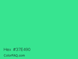 Hex #37e490 Color is a normal green color and the nearest color is Shamrock #33cc99. Hex code #37e490 and RGB value is rgb(55,228,144). In RGB color space, this color is composed of 22% red, 89% green, 56% blue, In CMYK color space, this color is composed of 76% cyan, 0% magenta, 37% yellow , 11% black , In HSL color space, this color has a hue angle of 151° , 76% saturation and 55% lightness.