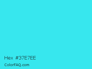 Hex #37e7ee Color is a normal cyan color and the nearest color is Turquoise #40e0d0. Hex code #37e7ee and RGB value is rgb(55,231,238). In RGB color space, this color is composed of 22% red, 91% green, 93% blue, In CMYK color space, this color is composed of 77% cyan, 3% magenta, 0% yellow , 7% black , In HSL color space, this color has a hue angle of 182° , 84% saturation and 57% lightness.