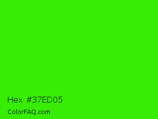 Hex #37ed05 Color is a normal green color and the nearest color is Harlequin #3fff00. Hex code #37ed05 and RGB value is rgb(55,237,5). In RGB color space, this color is composed of 22% red, 93% green, 2% blue, In CMYK color space, this color is composed of 77% cyan, 0% magenta, 98% yellow , 7% black , In HSL color space, this color has a hue angle of 107° , 96% saturation and 47% lightness.