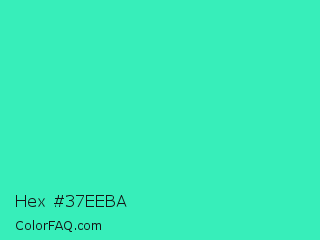 Hex #37eeba Color is a normal green color and the nearest color is Turquoise #40e0d0. Hex code #37eeba and RGB value is rgb(55,238,186). In RGB color space, this color is composed of 22% red, 93% green, 73% blue, In CMYK color space, this color is composed of 77% cyan, 0% magenta, 22% yellow , 7% black , In HSL color space, this color has a hue angle of 163° , 84% saturation and 57% lightness.