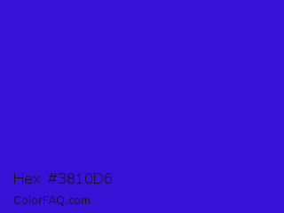 Hex #3810d6 Color is a normal indigo color and the nearest color is Interdimensional Blue #360ccc. Hex code #3810d6 and RGB value is rgb(56,16,214). In RGB color space, this color is composed of 22% red, 6% green, 84% blue, In CMYK color space, this color is composed of 74% cyan, 93% magenta, 0% yellow , 16% black , In HSL color space, this color has a hue angle of 252° , 86% saturation and 45% lightness.