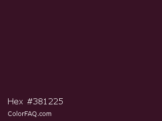 Hex #381225 Color is a very dark rose color and the nearest color is Jon #3b1f1f. Hex code #381225 and RGB value is rgb(56,18,37). In RGB color space, this color is composed of 22% red, 7% green, 15% blue, In CMYK color space, this color is composed of 0% cyan, 68% magenta, 34% yellow , 78% black , In HSL color space, this color has a hue angle of 330° , 51% saturation and 15% lightness.