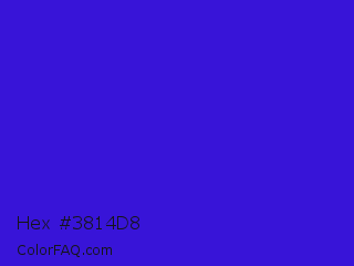 Hex #3814d8 Color is a normal indigo color and the nearest color is Interdimensional Blue #360ccc. Hex code #3814d8 and RGB value is rgb(56,20,216). In RGB color space, this color is composed of 22% red, 8% green, 85% blue, In CMYK color space, this color is composed of 74% cyan, 91% magenta, 0% yellow , 15% black , In HSL color space, this color has a hue angle of 251° , 83% saturation and 46% lightness.