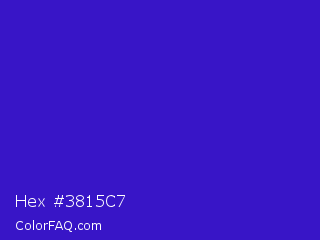 Hex #3815c7 Color is a normal indigo color and the nearest color is Interdimensional Blue #360ccc. Hex code #3815c7 and RGB value is rgb(56,21,199). In RGB color space, this color is composed of 22% red, 8% green, 78% blue, In CMYK color space, this color is composed of 72% cyan, 89% magenta, 0% yellow , 22% black , In HSL color space, this color has a hue angle of 252° , 81% saturation and 43% lightness.
