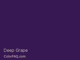 Hex #381a51 Color is a very dark purple color, the color name is Deep Grape and the nearest color is Russian Violet #32174d. Hex code #381a51 and RGB value is rgb(56,26,81). In RGB color space, this color is composed of 22% red, 10% green, 32% blue, In CMYK color space, this color is composed of 31% cyan, 68% magenta, 0% yellow , 68% black , In HSL color space, this color has a hue angle of 273° , 51% saturation and 21% lightness.