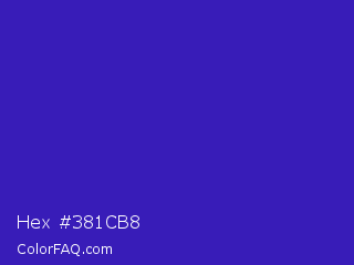 Hex #381cb8 Color is a normal indigo color and the nearest color is Interdimensional Blue #360ccc. Hex code #381cb8 and RGB value is rgb(56,28,184). In RGB color space, this color is composed of 22% red, 11% green, 72% blue, In CMYK color space, this color is composed of 70% cyan, 85% magenta, 0% yellow , 28% black , In HSL color space, this color has a hue angle of 251° , 74% saturation and 42% lightness.