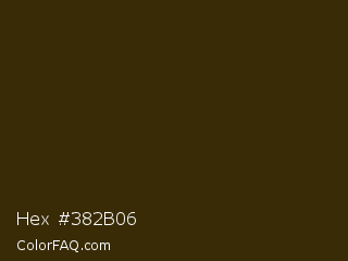 Hex #382b06 Color is a very dark orange color and the nearest color is Brown Tumbleweed #37290e. Hex code #382b06 and RGB value is rgb(56,43,6). In RGB color space, this color is composed of 22% red, 17% green, 2% blue, In CMYK color space, this color is composed of 0% cyan, 23% magenta, 89% yellow , 78% black , In HSL color space, this color has a hue angle of 44° , 81% saturation and 12% lightness.