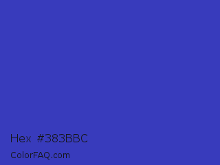Hex #383bbc Color is a normal blue color and the nearest color is Governor Bay #2f3cb3. Hex code #383bbc and RGB value is rgb(56,59,188). In RGB color space, this color is composed of 22% red, 23% green, 74% blue, In CMYK color space, this color is composed of 70% cyan, 69% magenta, 0% yellow , 26% black , In HSL color space, this color has a hue angle of 239° , 54% saturation and 48% lightness.
