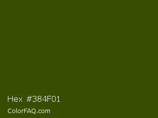 Hex #384f01 Color is a very dark lime color and the nearest color is Clover #384910. Hex code #384f01 and RGB value is rgb(56,79,1). In RGB color space, this color is composed of 22% red, 31% green, 0% blue, In CMYK color space, this color is composed of 29% cyan, 0% magenta, 99% yellow , 69% black , In HSL color space, this color has a hue angle of 78° , 98% saturation and 16% lightness.