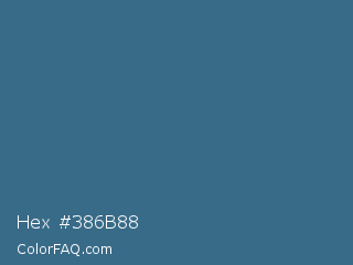 Hex #386b88 Color is a normal blue color and the nearest color is Teal Blue #367588. Hex code #386b88 and RGB value is rgb(56,107,136). In RGB color space, this color is composed of 22% red, 42% green, 53% blue, In CMYK color space, this color is composed of 59% cyan, 21% magenta, 0% yellow , 47% black , In HSL color space, this color has a hue angle of 202° , 42% saturation and 38% lightness.