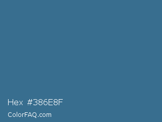 Hex #386e8f Color is a normal blue color and the nearest color is Calypso #31728d. Hex code #386e8f and RGB value is rgb(56,110,143). In RGB color space, this color is composed of 22% red, 43% green, 56% blue, In CMYK color space, this color is composed of 61% cyan, 23% magenta, 0% yellow , 44% black , In HSL color space, this color has a hue angle of 203° , 44% saturation and 39% lightness.