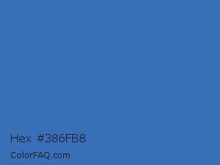 Hex #386fb8 Color is a normal blue color and the nearest color is San Marino #456cac. Hex code #386fb8 and RGB value is rgb(56,111,184). In RGB color space, this color is composed of 22% red, 44% green, 72% blue, In CMYK color space, this color is composed of 70% cyan, 40% magenta, 0% yellow , 28% black , In HSL color space, this color has a hue angle of 214° , 53% saturation and 47% lightness.