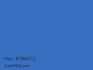 Hex #386fc1 Color is a normal blue color and the nearest color is Han Blue #446ccf. Hex code #386fc1 and RGB value is rgb(56,111,193). In RGB color space, this color is composed of 22% red, 44% green, 76% blue, In CMYK color space, this color is composed of 71% cyan, 42% magenta, 0% yellow , 24% black , In HSL color space, this color has a hue angle of 216° , 55% saturation and 49% lightness.