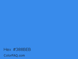 Hex #388beb Color is a normal blue color and the nearest color is Bleu De France #318ce7. Hex code #388beb and RGB value is rgb(56,139,235). In RGB color space, this color is composed of 22% red, 55% green, 92% blue, In CMYK color space, this color is composed of 76% cyan, 41% magenta, 0% yellow , 8% black , In HSL color space, this color has a hue angle of 212° , 82% saturation and 57% lightness.