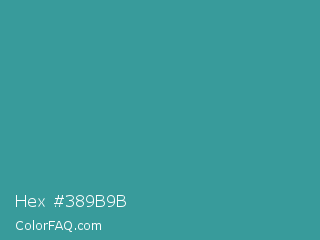 Hex #389b9b Color is a normal cyan color and the nearest color is Zomp #39a78e. Hex code #389b9b and RGB value is rgb(56,155,155). In RGB color space, this color is composed of 22% red, 61% green, 61% blue, In CMYK color space, this color is composed of 64% cyan, 0% magenta, 0% yellow , 39% black , In HSL color space, this color has a hue angle of 180° , 47% saturation and 41% lightness.