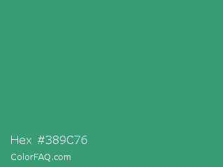 Hex #389c76 Color is a normal green color and the nearest color is Illuminating Emerald #319177. Hex code #389c76 and RGB value is rgb(56,156,118). In RGB color space, this color is composed of 22% red, 61% green, 46% blue, In CMYK color space, this color is composed of 64% cyan, 0% magenta, 24% yellow , 39% black , In HSL color space, this color has a hue angle of 157° , 47% saturation and 42% lightness.