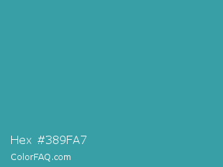 Hex #389fa7 Color is a normal cyan color and the nearest color is Keppel #3ab09e. Hex code #389fa7 and RGB value is rgb(56,159,167). In RGB color space, this color is composed of 22% red, 62% green, 65% blue, In CMYK color space, this color is composed of 66% cyan, 5% magenta, 0% yellow , 35% black , In HSL color space, this color has a hue angle of 184° , 50% saturation and 44% lightness.