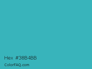 Hex #38b4bb Color is a normal cyan color and the nearest color is Pelorous #3eabbf. Hex code #38b4bb and RGB value is rgb(56,180,187). In RGB color space, this color is composed of 22% red, 71% green, 73% blue, In CMYK color space, this color is composed of 70% cyan, 4% magenta, 0% yellow , 27% black , In HSL color space, this color has a hue angle of 183° , 54% saturation and 48% lightness.