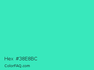 Hex #38e8bc Color is a normal cyan color and the nearest color is Turquoise #40e0d0. Hex code #38e8bc and RGB value is rgb(56,232,188). In RGB color space, this color is composed of 22% red, 91% green, 74% blue, In CMYK color space, this color is composed of 76% cyan, 0% magenta, 19% yellow , 9% black , In HSL color space, this color has a hue angle of 165° , 79% saturation and 56% lightness.