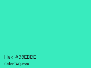 Hex #38ebbe Color is a normal cyan color and the nearest color is Turquoise #40e0d0. Hex code #38ebbe and RGB value is rgb(56,235,190). In RGB color space, this color is composed of 22% red, 92% green, 75% blue, In CMYK color space, this color is composed of 76% cyan, 0% magenta, 19% yellow , 8% black , In HSL color space, this color has a hue angle of 165° , 82% saturation and 57% lightness.