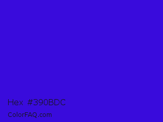 Hex #390bdc Color is a normal indigo color and the nearest color is Interdimensional Blue #360ccc. Hex code #390bdc and RGB value is rgb(57,11,220). In RGB color space, this color is composed of 22% red, 4% green, 86% blue, In CMYK color space, this color is composed of 74% cyan, 95% magenta, 0% yellow , 14% black , In HSL color space, this color has a hue angle of 253° , 90% saturation and 45% lightness.