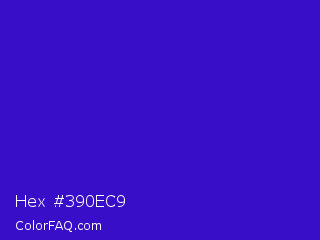 Hex #390ec9 Color is a normal indigo color and the nearest color is Interdimensional Blue #360ccc. Hex code #390ec9 and RGB value is rgb(57,14,201). In RGB color space, this color is composed of 22% red, 5% green, 79% blue, In CMYK color space, this color is composed of 72% cyan, 93% magenta, 0% yellow , 21% black , In HSL color space, this color has a hue angle of 254° , 87% saturation and 42% lightness.