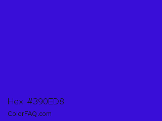 Hex #390ed8 Color is a normal indigo color and the nearest color is Interdimensional Blue #360ccc. Hex code #390ed8 and RGB value is rgb(57,14,216). In RGB color space, this color is composed of 22% red, 5% green, 85% blue, In CMYK color space, this color is composed of 74% cyan, 94% magenta, 0% yellow , 15% black , In HSL color space, this color has a hue angle of 253° , 88% saturation and 45% lightness.