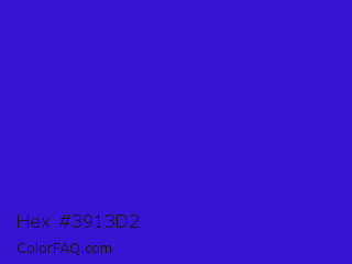 Hex #3913d2 Color is a normal indigo color and the nearest color is Interdimensional Blue #360ccc. Hex code #3913d2 and RGB value is rgb(57,19,210). In RGB color space, this color is composed of 22% red, 7% green, 82% blue, In CMYK color space, this color is composed of 73% cyan, 91% magenta, 0% yellow , 18% black , In HSL color space, this color has a hue angle of 252° , 83% saturation and 45% lightness.
