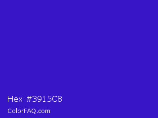 Hex #3915c8 Color is a normal indigo color and the nearest color is Interdimensional Blue #360ccc. Hex code #3915c8 and RGB value is rgb(57,21,200). In RGB color space, this color is composed of 22% red, 8% green, 78% blue, In CMYK color space, this color is composed of 72% cyan, 90% magenta, 0% yellow , 22% black , In HSL color space, this color has a hue angle of 252° , 81% saturation and 43% lightness.