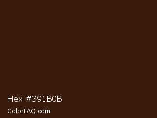 Hex #391b0b Color is a very dark orange color and the nearest color is Clinker #371d09. Hex code #391b0b and RGB value is rgb(57,27,11). In RGB color space, this color is composed of 22% red, 11% green, 4% blue, In CMYK color space, this color is composed of 0% cyan, 53% magenta, 81% yellow , 78% black , In HSL color space, this color has a hue angle of 21° , 68% saturation and 13% lightness.
