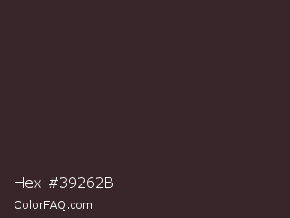 Hex #39262b Color is a very dark rose color and the nearest color is Thunder #33292f. Hex code #39262b and RGB value is rgb(57,38,43). In RGB color space, this color is composed of 22% red, 15% green, 17% blue, In CMYK color space, this color is composed of 0% cyan, 33% magenta, 25% yellow , 78% black , In HSL color space, this color has a hue angle of 344° , 20% saturation and 19% lightness.