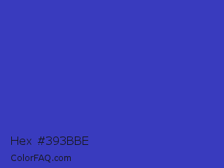 Hex #393bbe Color is a normal blue color and the nearest color is Governor Bay #2f3cb3. Hex code #393bbe and RGB value is rgb(57,59,190). In RGB color space, this color is composed of 22% red, 23% green, 75% blue, In CMYK color space, this color is composed of 70% cyan, 69% magenta, 0% yellow , 25% black , In HSL color space, this color has a hue angle of 239° , 54% saturation and 48% lightness.